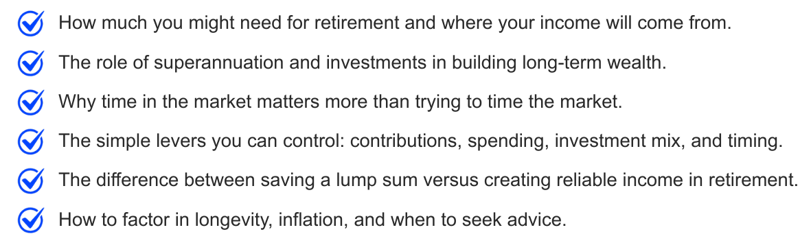 Retirement may seem far away, but the earlier you start planning, the more options and freedom you’ll have later in life. This short video gives you the essentials you need to start planning with confidence, without the jargon or overwhelm.